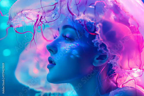 Dreamlike Portrait of a Woman with Ethereal Jellyfish Elements