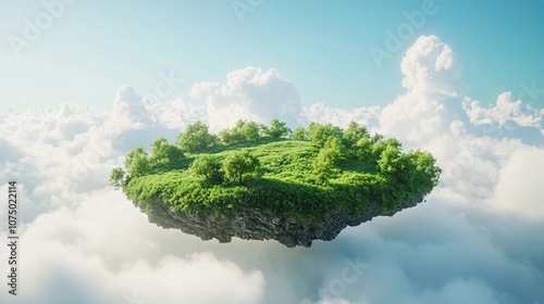 Dreamy Aerial View of a Floating Island Surrounded by Clouds. AI generated illustration