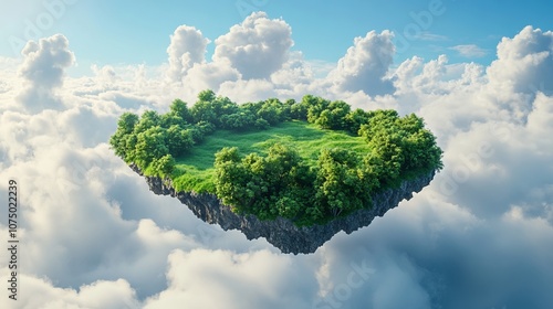 Dreamy Aerial View of a Floating Island Surrounded by Clouds. AI generated illustration