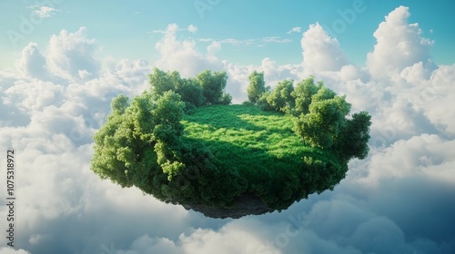 Dreamy Aerial View of a Floating Island Surrounded by Clouds. AI generated illustration