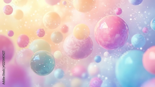 dreamy carousel of floating pastel spheres, soft cotton candy colors blending in ethereal space, digital art