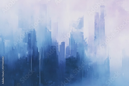 Dreamy Cityscape Abstract Watercolor City in Blue Hues