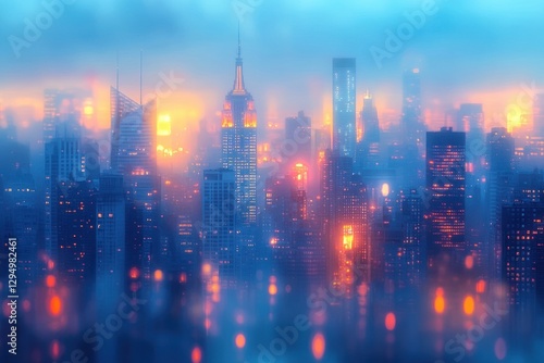 Dreamy Cityscape at Dusk with Blurred Lights and Bokeh Effects in Impressionist Style