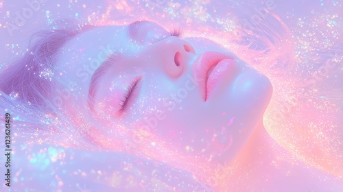 Dreamy Close-Up of a Serene Face with Delicate Features and Glow
