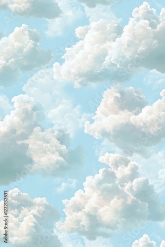 Dreamy cloud motif with fluffy white clouds on a serene baby blue background