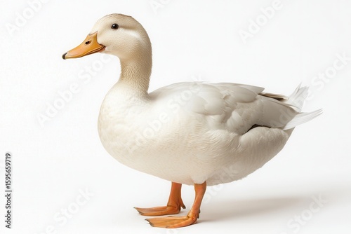 Dreamy day for a Duck looking forward to waddling, standing tall against a bright white Studio background