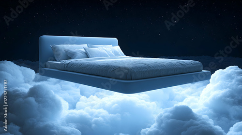 Dreamy Floating Bed Surrounded by Clouds and Stargazing Night Sky
