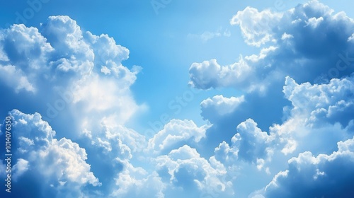 Dreamy fluffy clouds in a bright blue sky on a sunny day