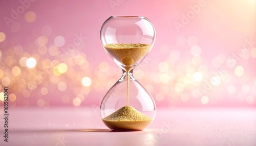 Dreamy Hourglass with Golden Sand on Baby Pink Gradient with Bokeh