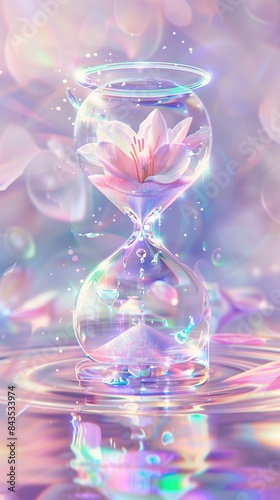Dreamy hourglass with lilies. Abstract art concept of time, love and astrology