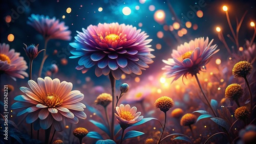 Dreamy Nocturnal Flower Art Backdrop: Magical Night Bloom Background