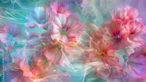 Dreamy pastel flowers soft light ethereal smoke floral background