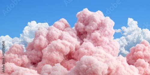 Dreamy Pink Cloudscape with Blue Sky and White Clouds