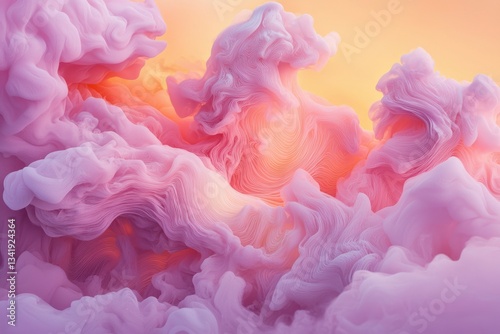 Dreamy pink smoke swirls against a warm golden background. Abstract. Art