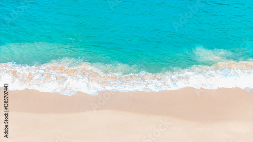 Dreamy summer beach with white sand and rolling turquoise waves. summer background and summer holiday concept.