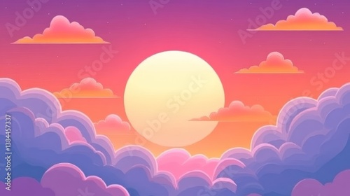 Dreamy Sunset with Pastel Clouds and Large Central Sun Illustration