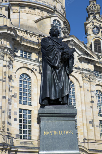 Dresden. Martin Luther monument in front of Frauenkirche cathedral...