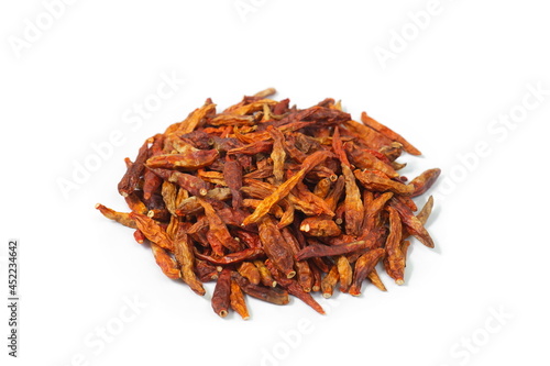 dried chili on white background.