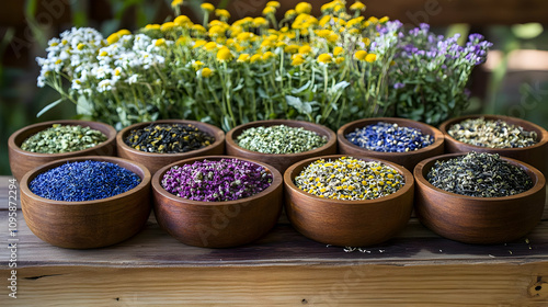 Dried Flowers in Wooden Bowls - Realistic Photo