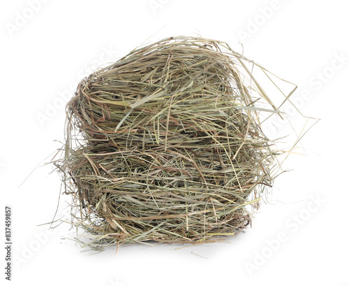 Dried hay isolated on white. Livestock feed