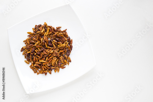 dried hot chili pepper on a plate on a white background
