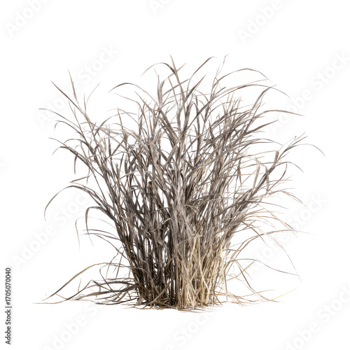 Dried, light-brown plant cluster with numerous thin, spiky stems