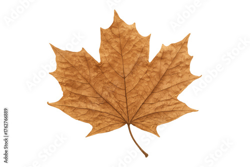 Dried maple leaf symbolizing autumn and seasonal change with texture visible on individual brown foliage