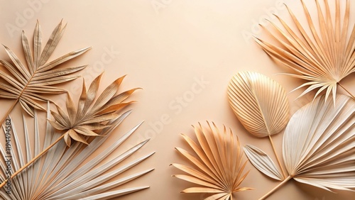 Dried Palm Leaves Arranged on a Beige Background in a Minimalist Style