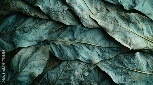 Dried teal leaves, close-up, nature, autumnal background