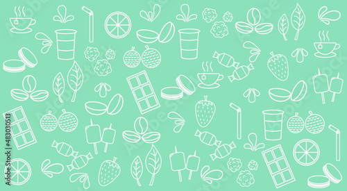 Drink symbols pattern illustration vector grey outline blue background editable.