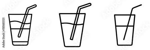 drinking straw in glass icon, drinks line art, drinks vector - simple black line art icon of drinking straw in glass perfect for logos, and drinks-themed designs.