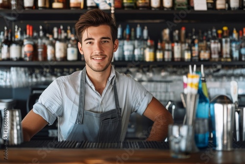 Drinks on me Portrait of a confident young man working behind a bar counter