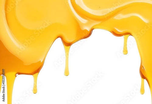 Dripping yellow liquid, possibly honey or syrup, against a white background