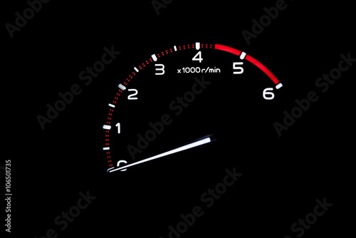 driver's cockpit ; tachometer on dashboard - white light in black and copy space
