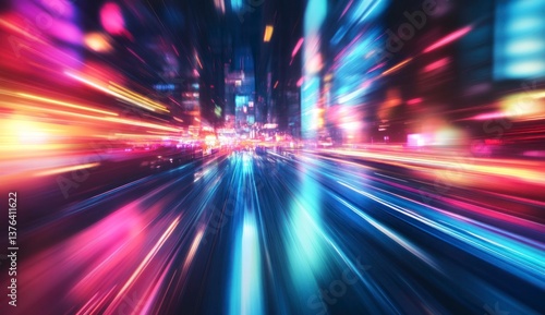 Driving Through City at Night Blurred Motion with Colorful Light Streaks