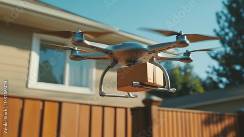 Drone delivering package to a house