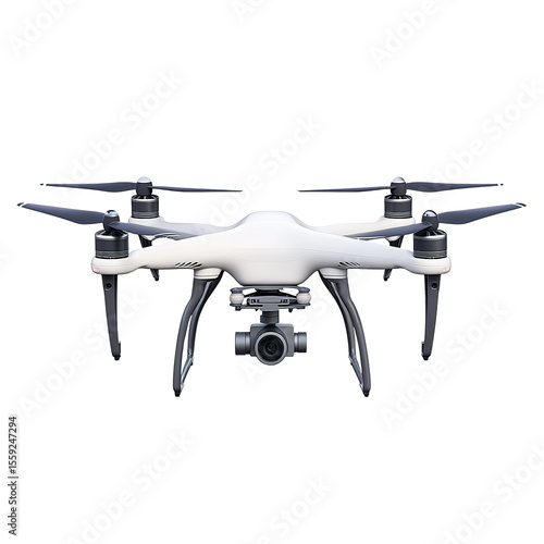 Drone isolated on transparent background. White quadcopter with camera.
