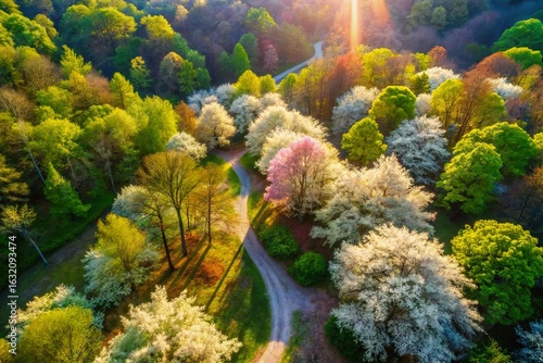 Drone View: Dogwood Blossoms Trail to Hidden Grotto