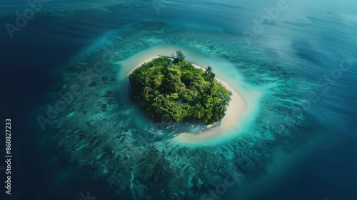 Drone view of island with white sand, beautiful ocean