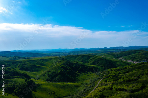 Drone view on forested mountain peaks, beautiful valleys, wildlife of Kazakhastan