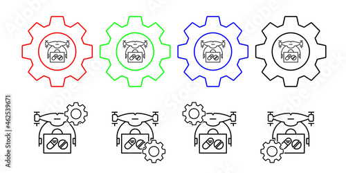 Drone with medicines field outline vector icon in gear set illustration for ui and ux, website or mobile application