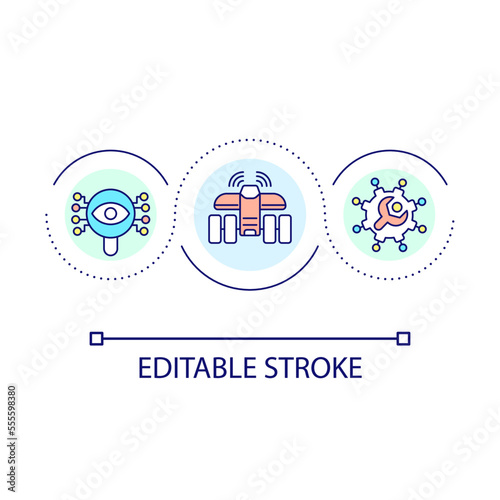 Drone-based solution loop concept icon. Precision agriculture. Smart farming maintenance abstract idea thin line illustration. Agribusiness. Isolated outline drawing. Editable stroke. Arial font used