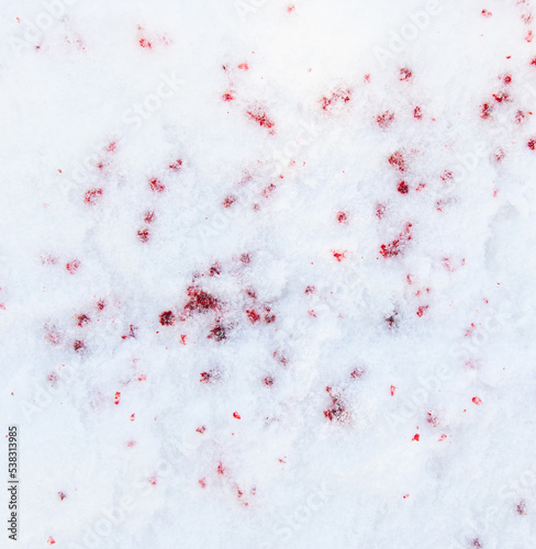 Drops of blood on white snow