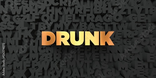 Drunk - Gold text on black background - 3D rendered royalty free stock picture. This image can be used for an online website banner ad or a print postcard.
