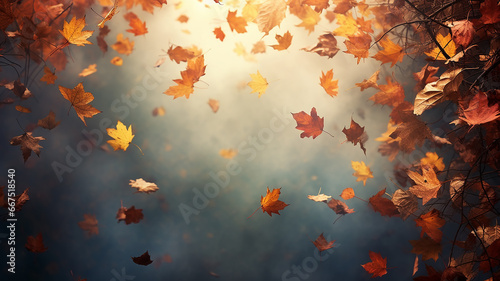 dry autumn falling leaves autumn park background, selective focus blurred forest background fall