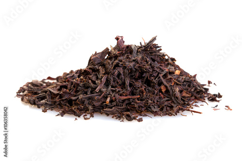 dry black tea leaves isolated on white