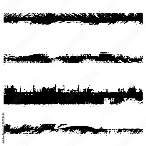 Dry brush strokes. Set of grunge pattern black on white background. Vector lines are jagged