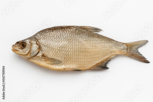 Dry fish displayed against a plain white backdrop