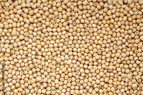 Dry organic soybean seed background, for clean food ingredient or agricultural product concept