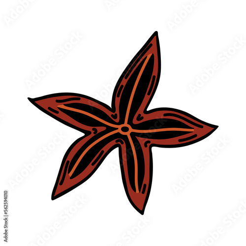 Dry star anise vector icon. Hand drawn illustration isolated on white. Culinary condiment, sweet spice for dessert. Indian, Chinese seasoning. Flat cartoon clipart, simple doodle. For menus, prints